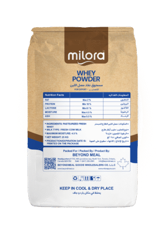 Milora Whey Powder is produced from fresh, pasteurized sweet whey derived from traditional cheese-making. It is a yellowish-white, free-flowing powder with a mild, sweet flavor and excellent solubility. Rich in natural milk nutrients, it serves as an affordable and functional source of protein, carbohydrates, and minerals for diverse food applications including bakery, confectionery, dairy, and nutritional products.